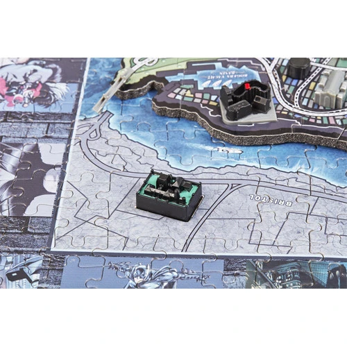 This puzzle will guide players through the assembly of the official DC map of Gotham City in a patented multi-layer design. The first layer is a 685 piece jigsaw puzzle that will teach you all about the various locations and regions of Gotham City. The second layer is an artistic 49 piece jigsaw puzzle that replicates the night landscape based on DC Comics official map of Gotham City.? The third layer you add 3D miniature replicas models into the puzzle, which include famous buildings and structures such as Wayne Manor, GCPD Gotham City Police Department, Ace Chemical Plant, Wayne Tower, Iceberg Casino & Lounge, and many more! Each model is a highly detailed mini sculpt of the actual location.
