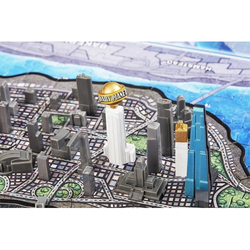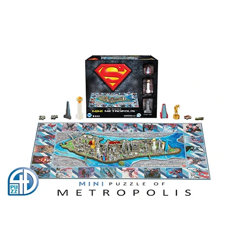 This puzzle will guide players through the assembly of the official DC map of Metropolis in a patented multi-layer design. The first layer is a 701+ piece jigsaw puzzle that will teach you all about the various locations and regions of Metropolis. The second layer is an artistic 35+ pieces jigsaw puzzle that replicates the more detailed landscape. The third layer you add 3D miniature replicas models into the puzzle, which include famous buildings and structures such as Daily Planet, Ace O Clubs, Metropolitan Museum of Art, Lexcorp Towers, STAR Labs, Suicide Slums, and many more! Each model is a highly detailed mini sculpt of the actual location.