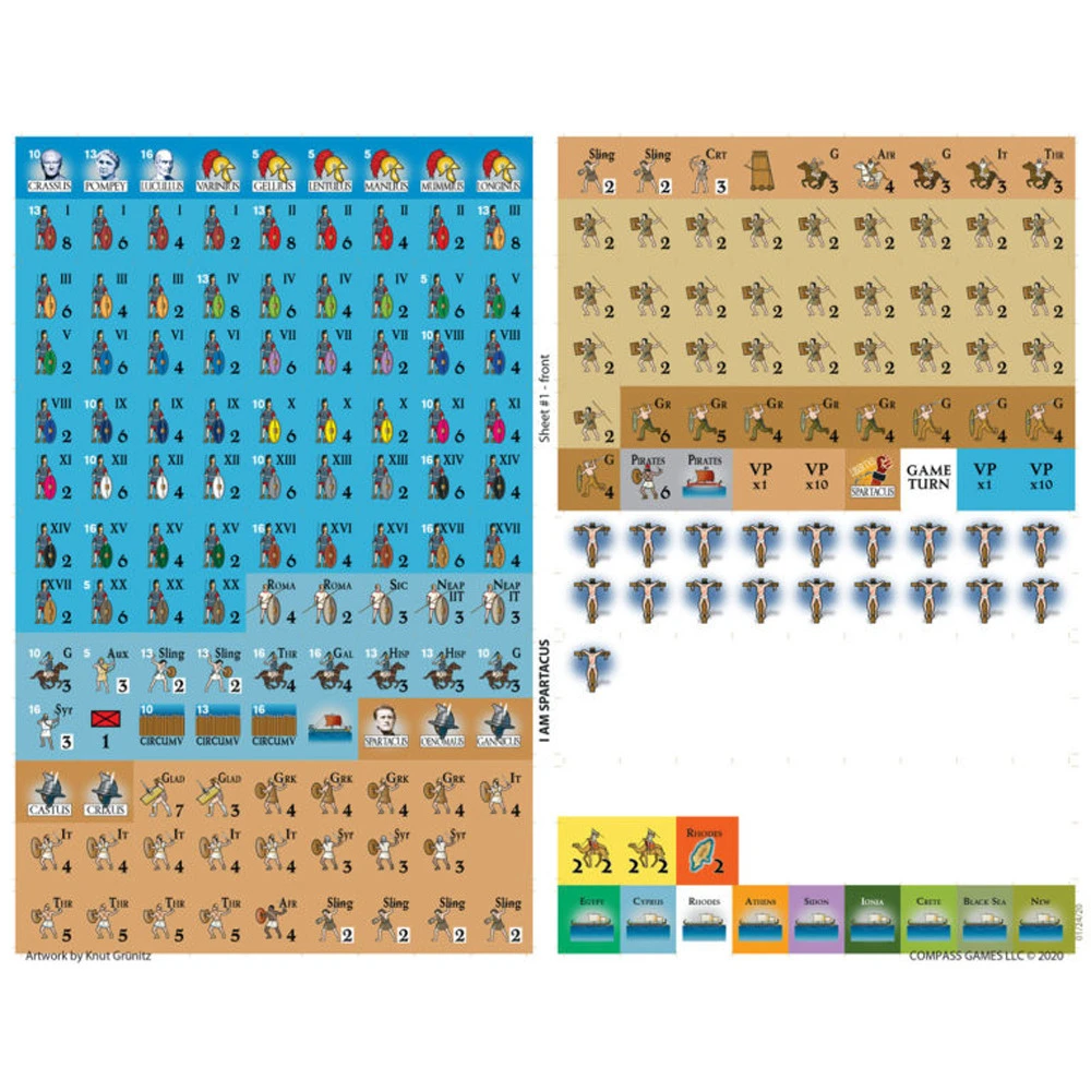 I am Spartacus is a two-player simulation of the Third Servile War, the slave revolt that shook the Roman Republic to its foundation from 73-71 BC. One player takes the role of the Senate, attempting to manage simultaneous foreign and domestic crisis. The opponent, the “Rebel player,” takes the role of Spartacus, the famous gladiator who led the revolt.