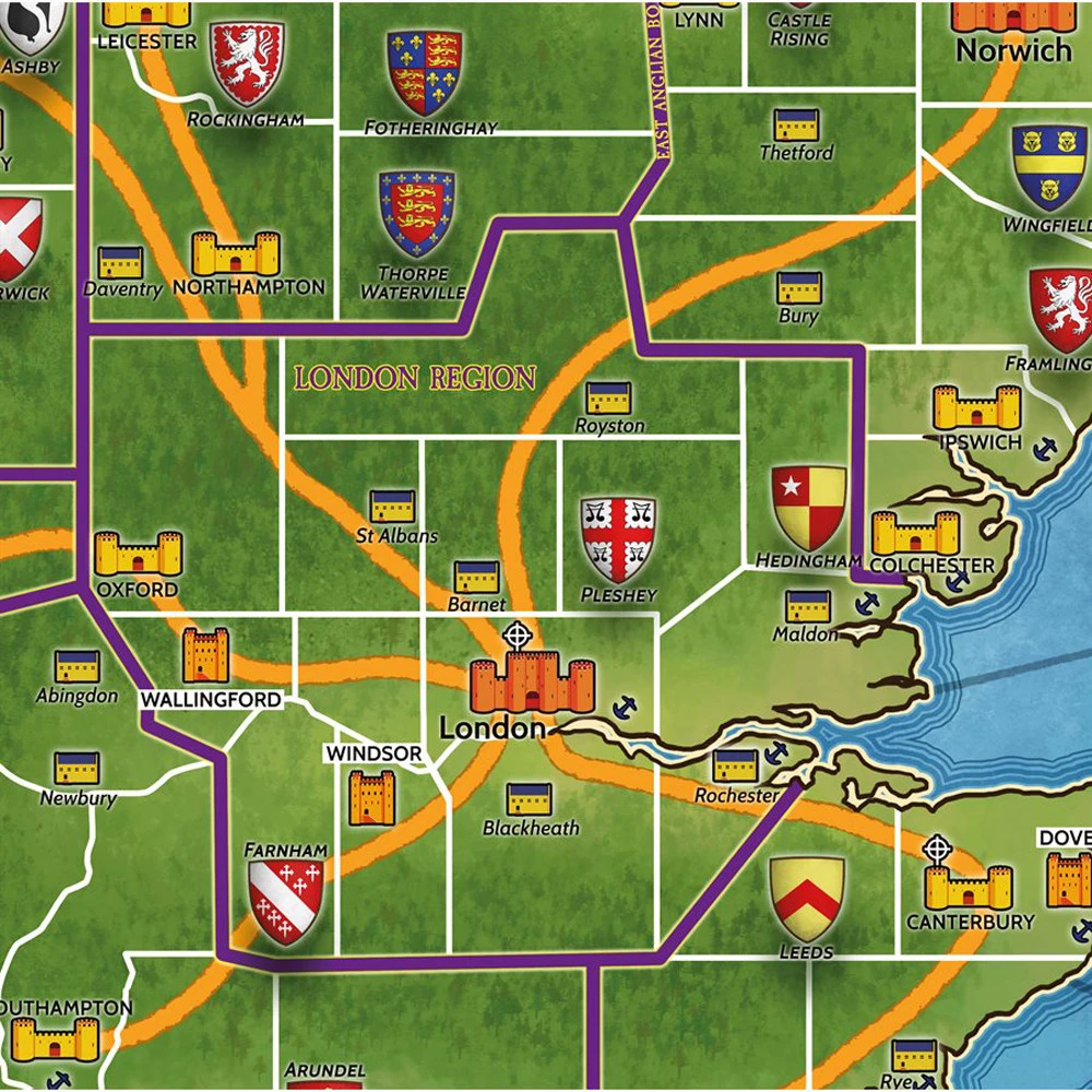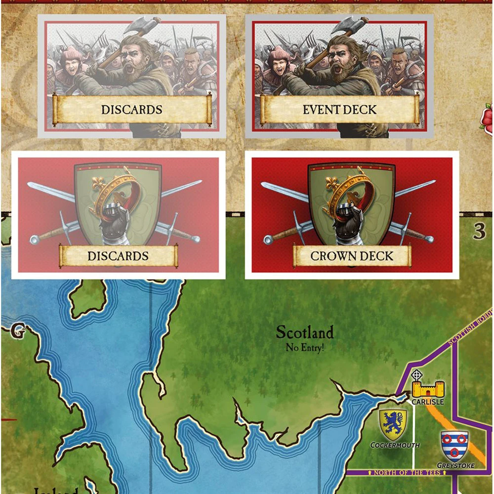 • Extended Classic Kingmaker with extra Crown and Event cards along with additional optional rules for Parliament and battles, in which dice can be used to determine whether Nobles and Royal pieces live or die.