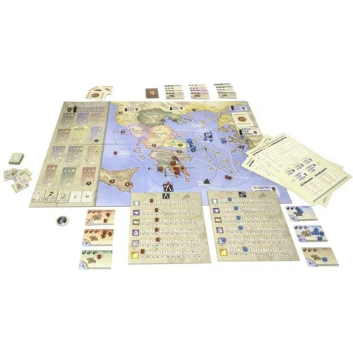 In this game, you control the gate of either Athens or Sparta, expanding the power of your League, attracting other Poleis to your side (either by diplomacy or force) and keeping an eye on trade and cultural progress as you seek to gain any advantage in this unique battle for hegemony!