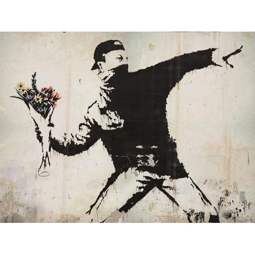 This powerful graffiti image first appeared as a large format stencil on Jerusalem’s West Bank wall, which separates Palestine from Israel. In the image, a young protester is in the act of hurling what you would expect to be a grenade, but instead is a bunch of flowers. As is typical of Banksy’s works, the image portrays a paradox of emotions, context, and symbolism that is both jarring and thought-provoking: it reminds us that peace and beauty can be powerful weapons against corruption and conflict.